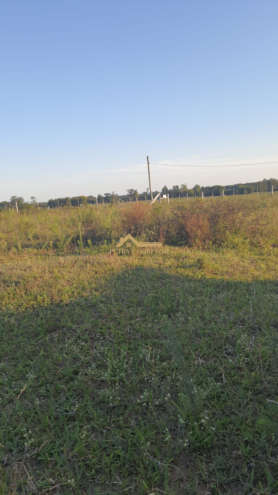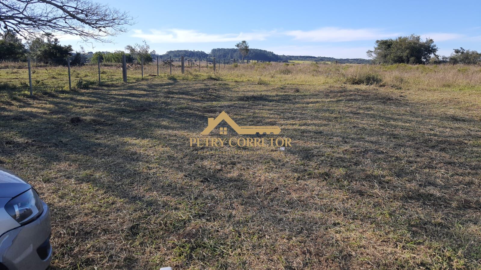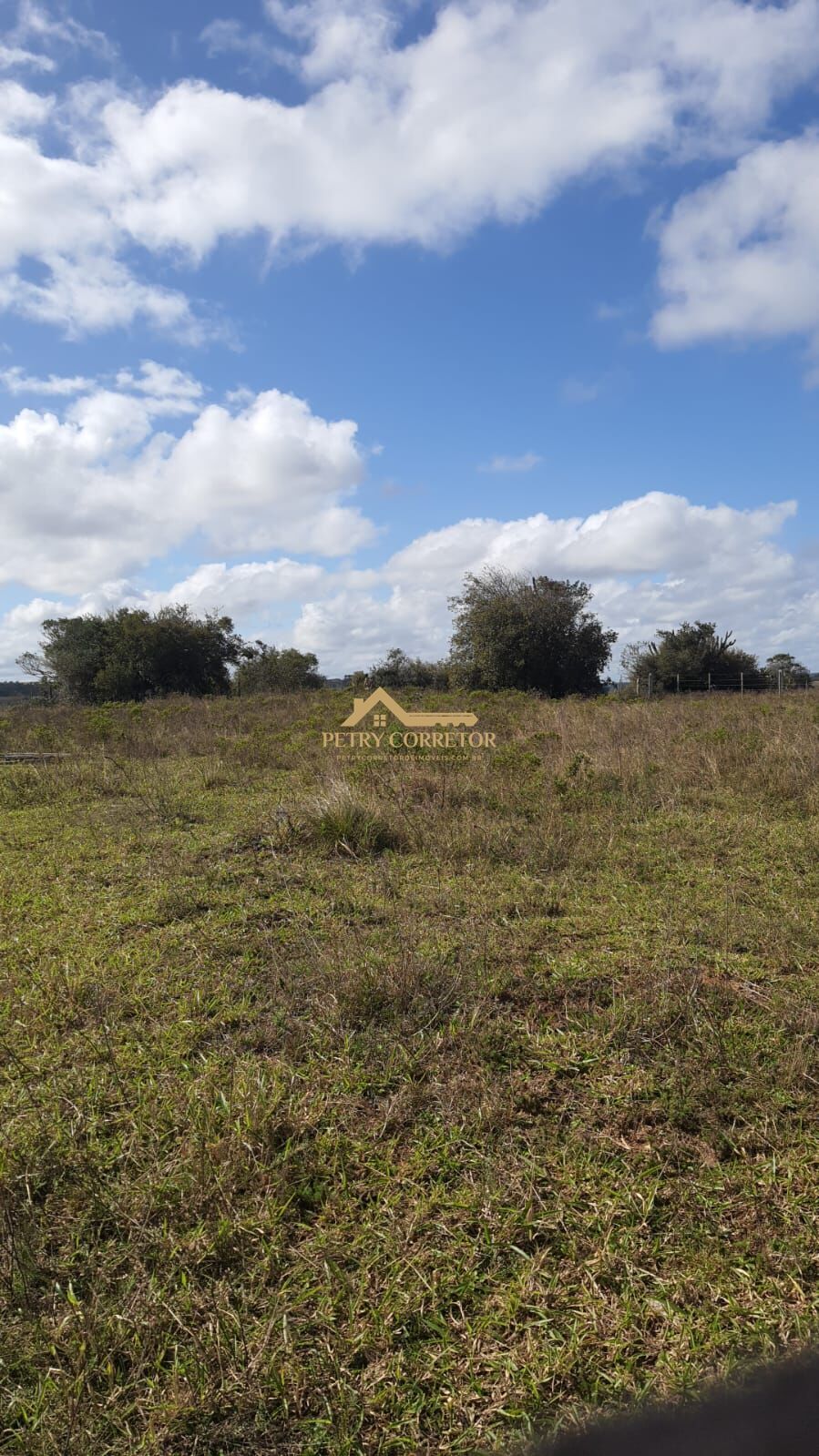 Topografia plana, cercado, luz e internet passando na frente, 900m da RS 040, rua sem saída com 6 sítios vizinhos.
